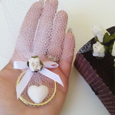 این گیفت زیبا از ترکیب حلقه 4سانتی ،تور, قلب دوسانتی، گل و ربان سفید درست شده