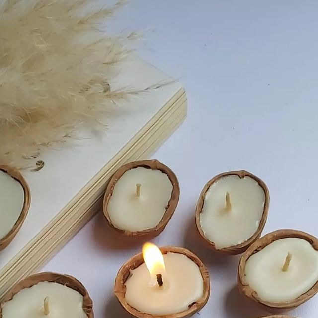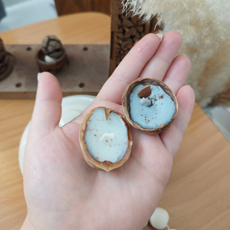 شمع 2عددی گردویی با رایحه آرامبخش و دلنشین دارچین با تزیین پودر دارچین