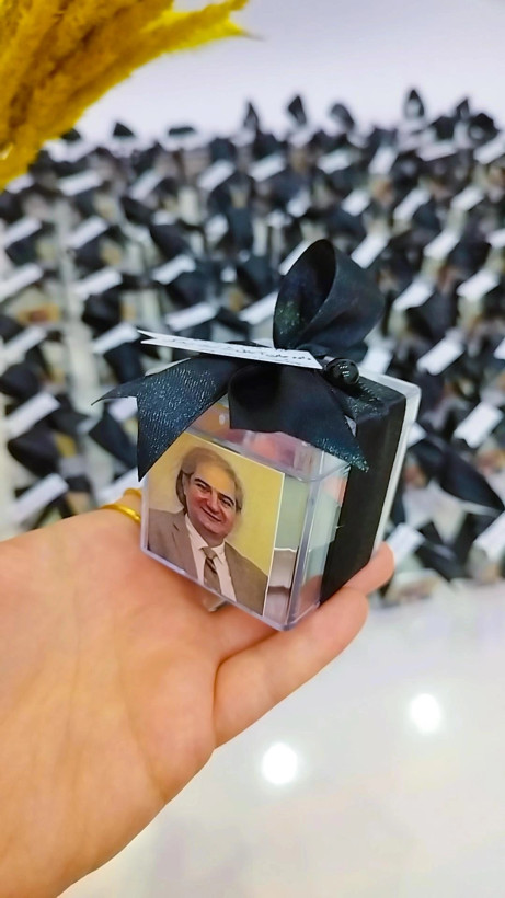 این گیفت پلکسی 5 در5 با تزیینات ربان مشکی و چاپ ویژه و دارای شمع وارمر داخلش جعبه میباشد