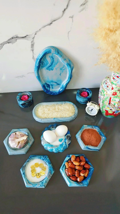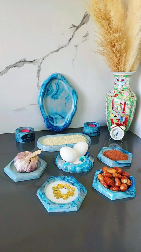 هفت سین 6ضلعی آبی 9تیکه کد4