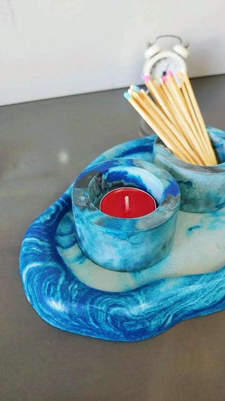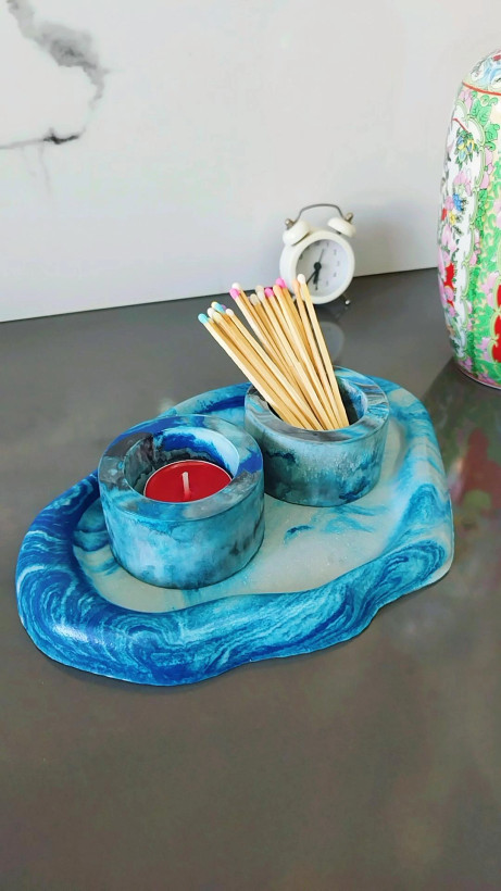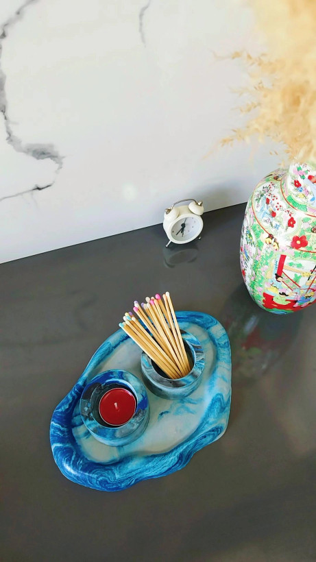 ست دکوری 3تکه سینی دفرمه رنگی با دو عدد شات جای شمع /خلال/کبریت و..