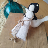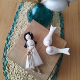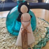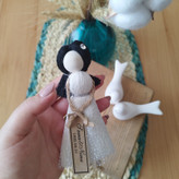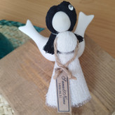 تم این گیفت زیبا میتونه تغییر بکنه تزییناتش تور روی دامن ، نگین روی سر، دست و پا کنفی یا نخ ،و با قیطون کمربند و موی سر بسته شده