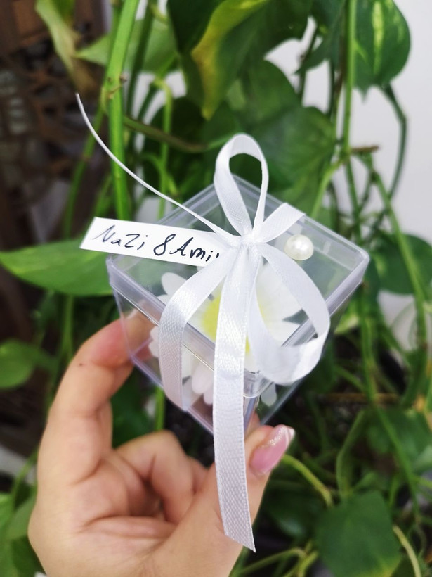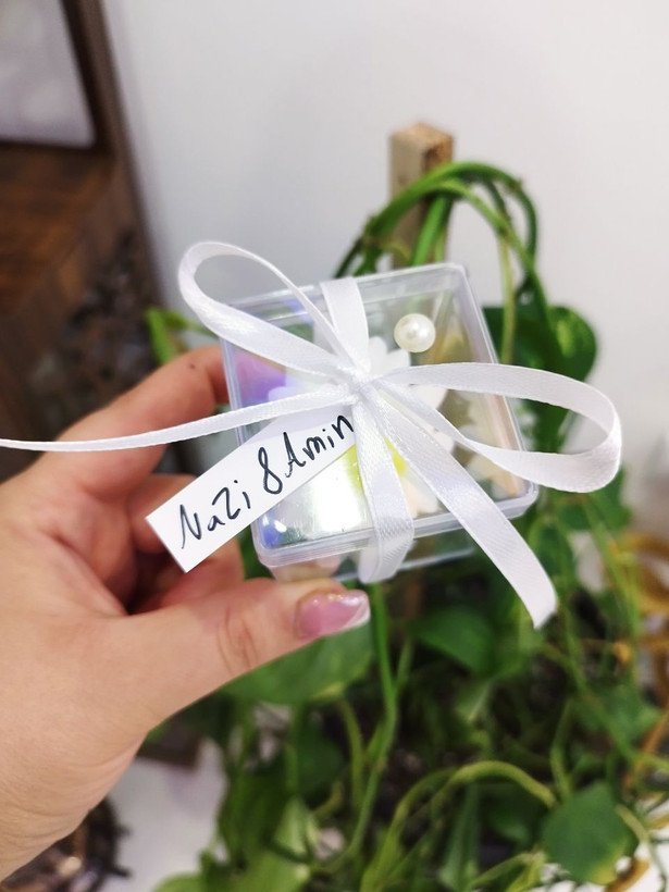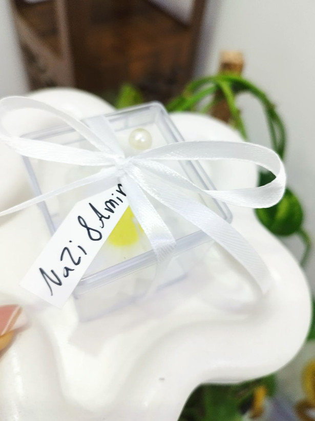 گیفت شمع بابونه با پلکسی و مروارید و ربان