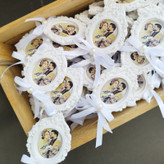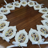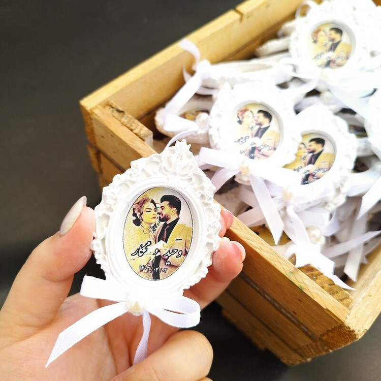 گیفت زیبای قاب عروس با تزیینات مروارید و ربان و چاپ مختص شما