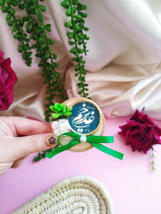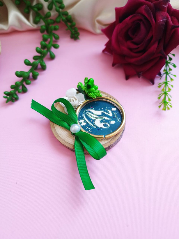 حلقه اسم و گل تزیینی با پاپیون سبز