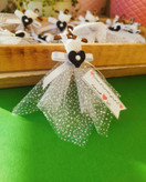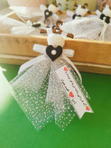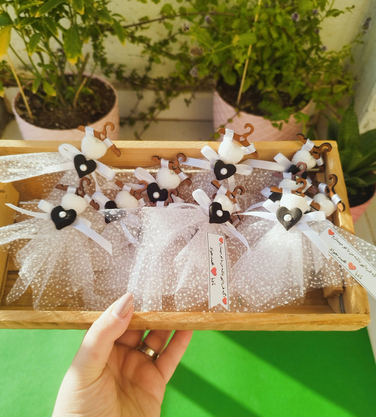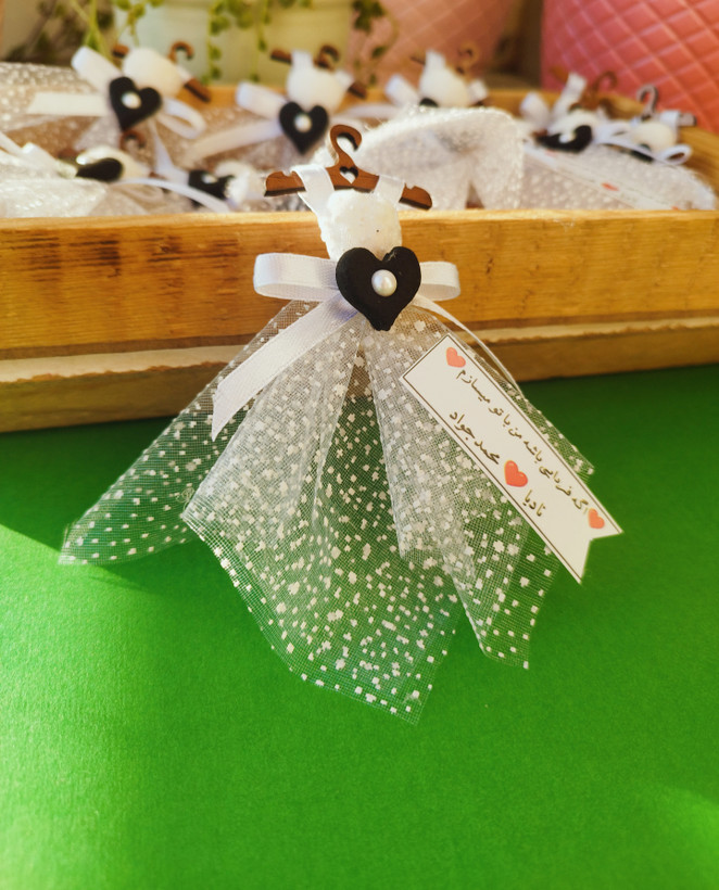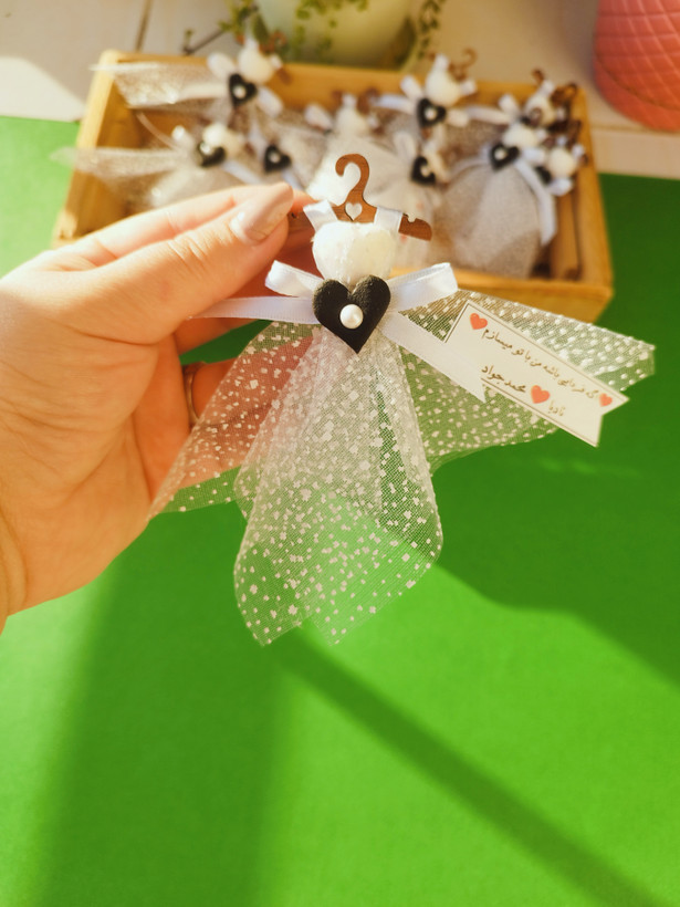 مدل لباس عروس با چوب لباسی چوبی ،روبان ،حنای قلبی