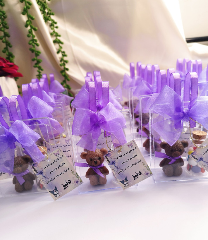 دارای شمع تدی و شیشه خوراکی اسمارتیز و نقل رنگی