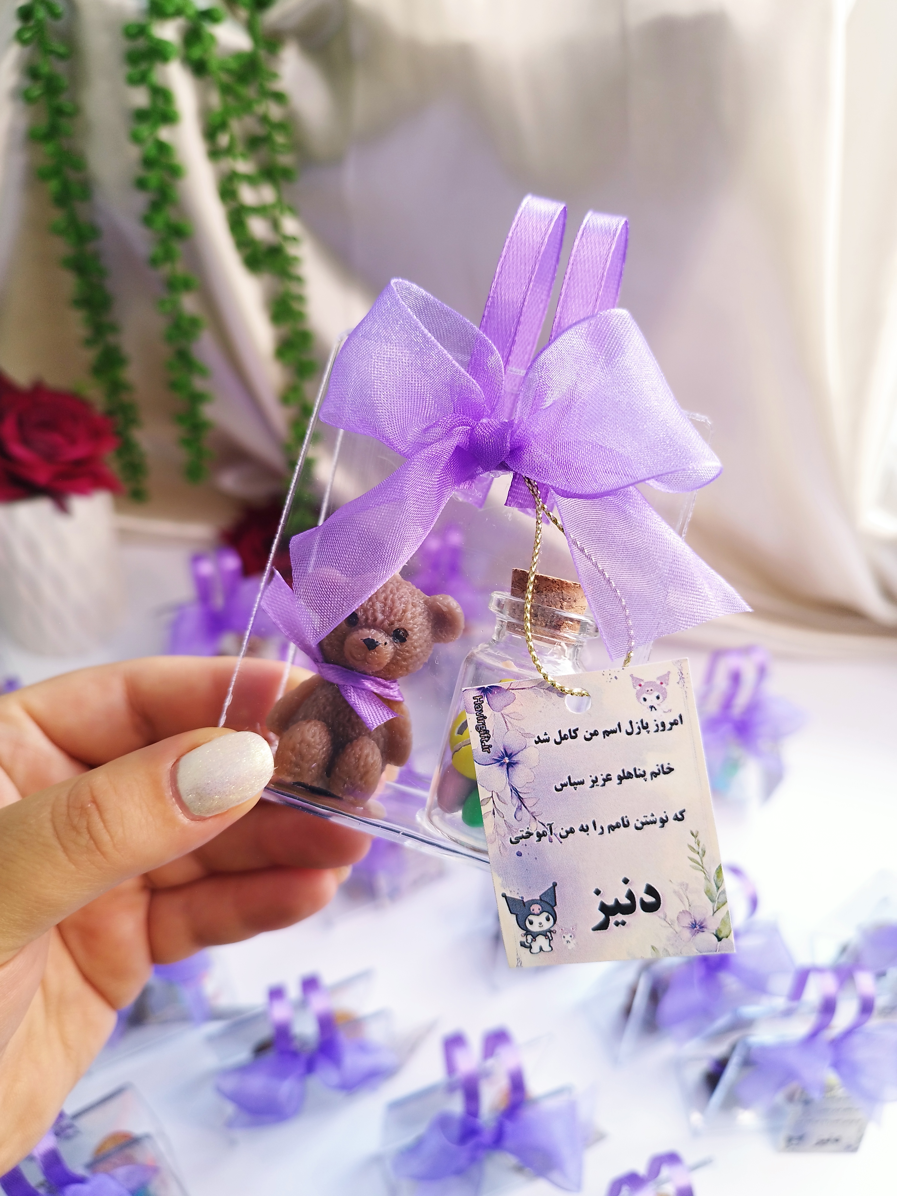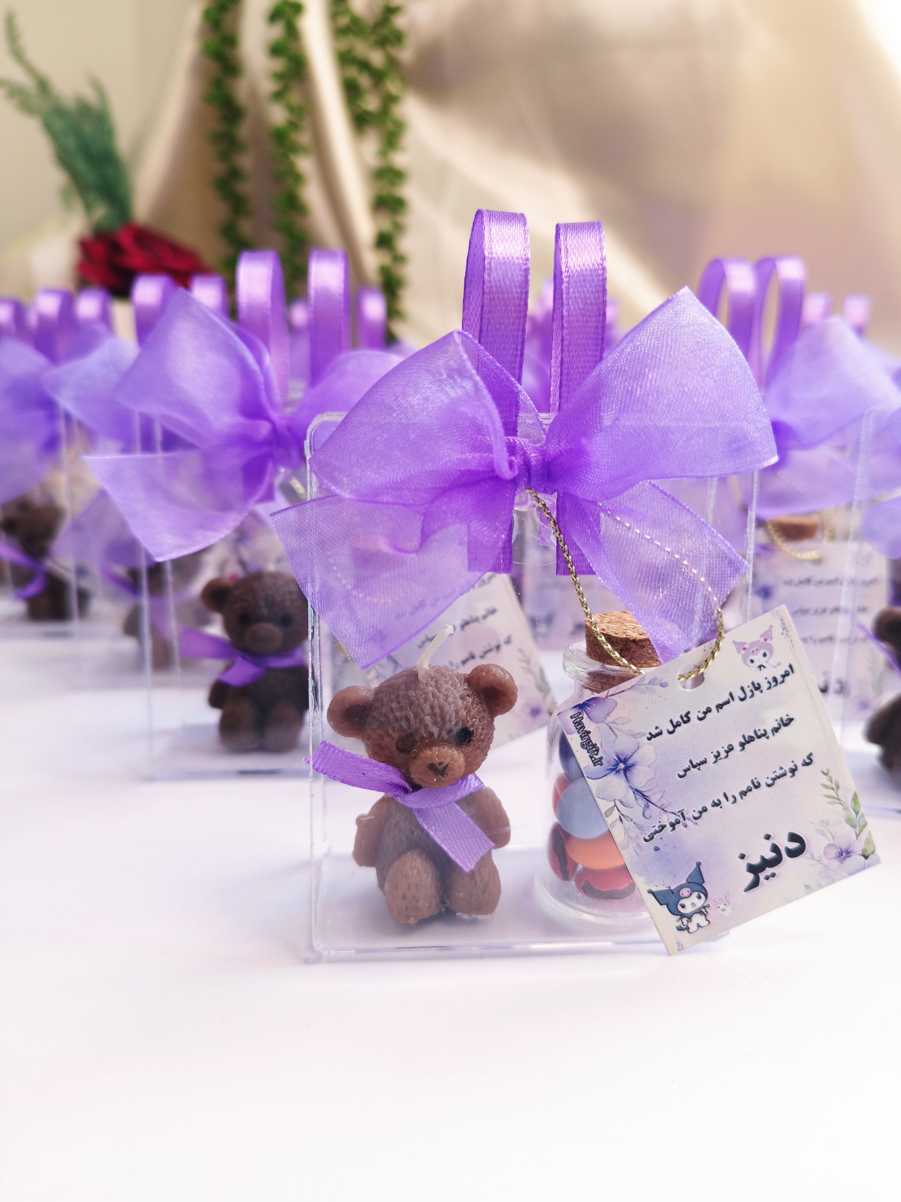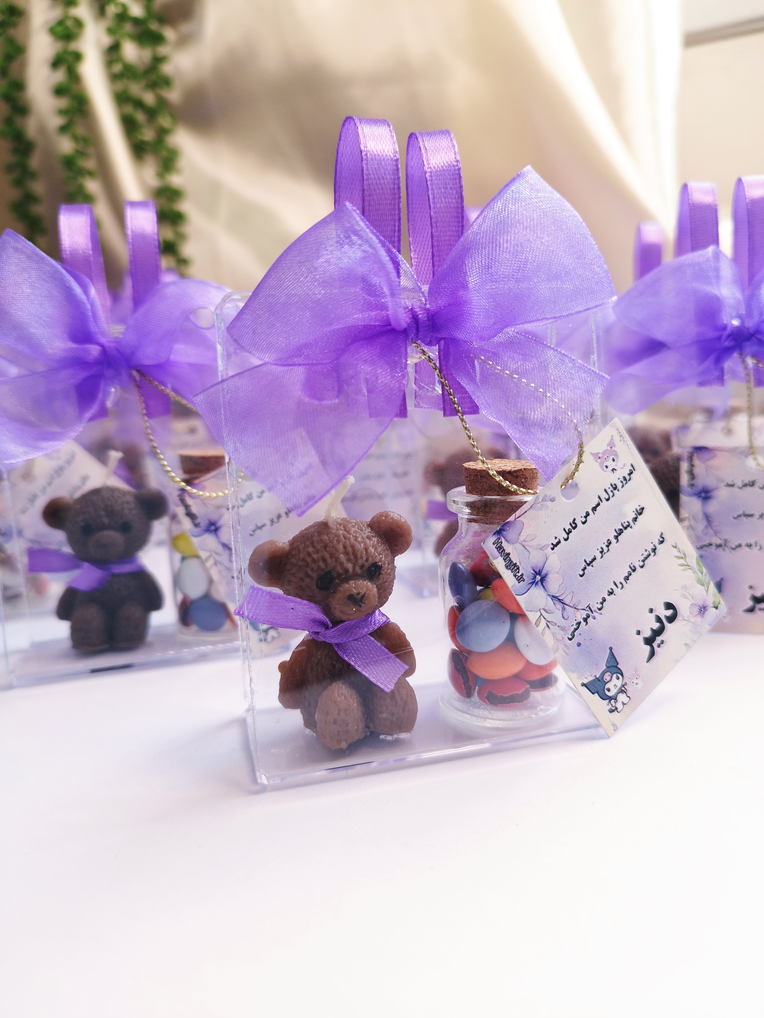دارای شمع تدی و شیشه خوراکی اسمارتیز و نقل رنگی