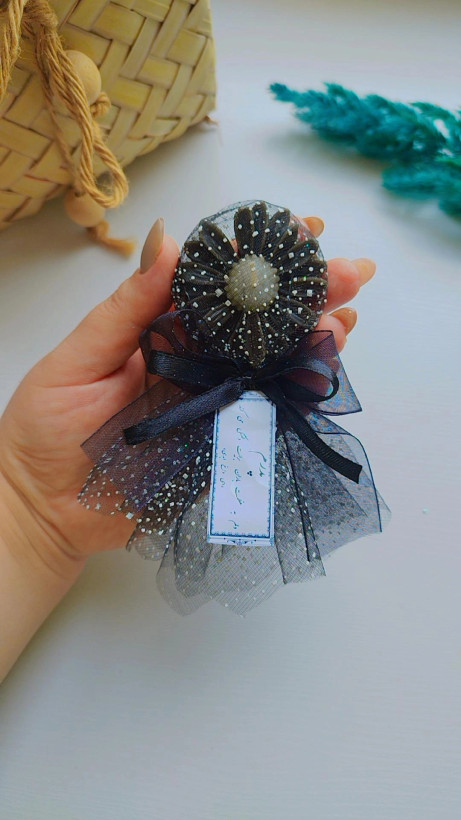 ✦ نام محصول: شمع بابونه دیزاین شده با تور
