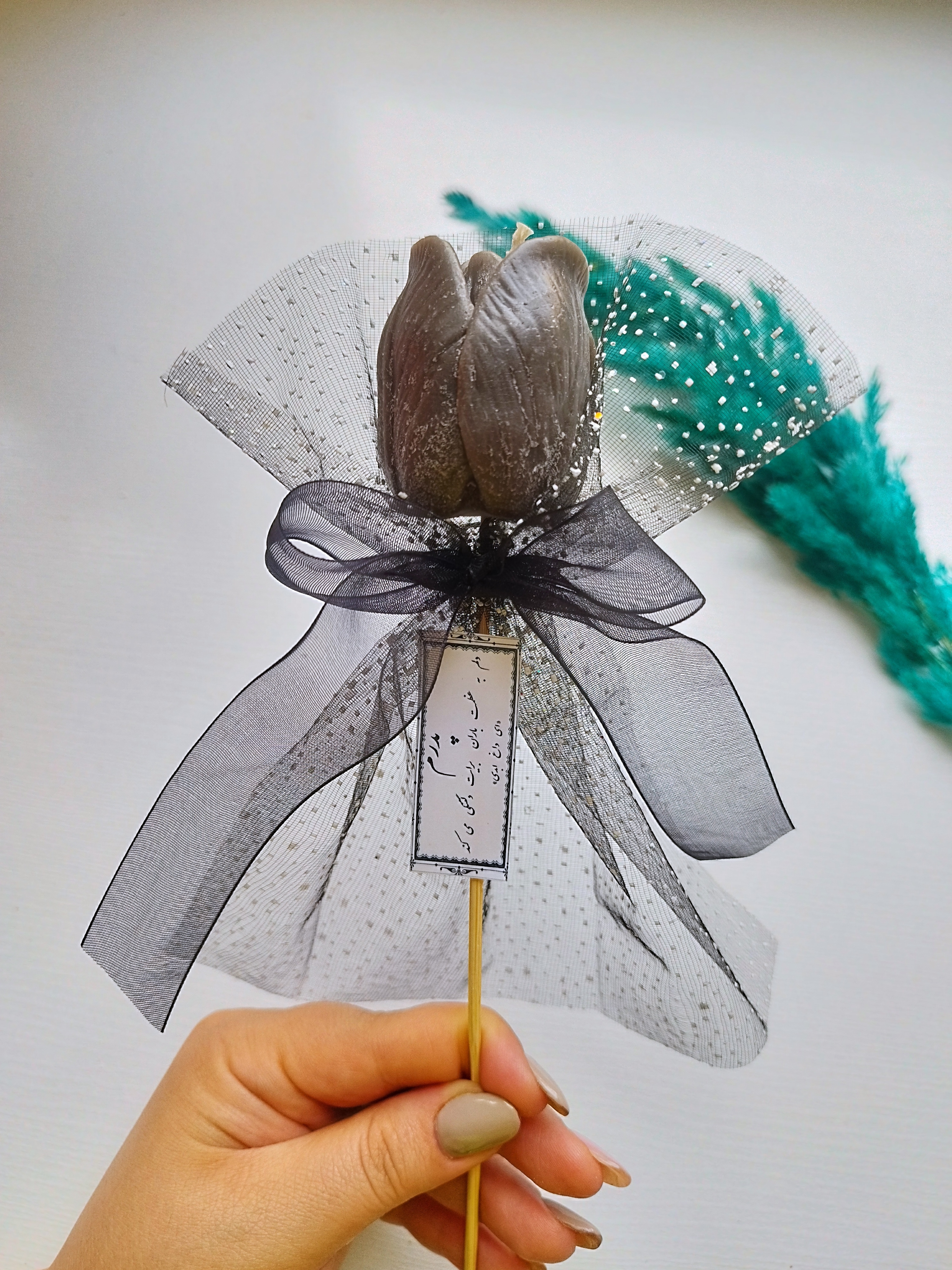 ✦ نام محصول: گیفت شاخه ای ترحیم شمع لاله