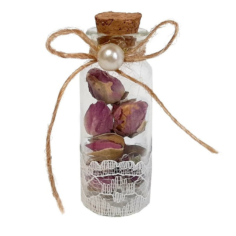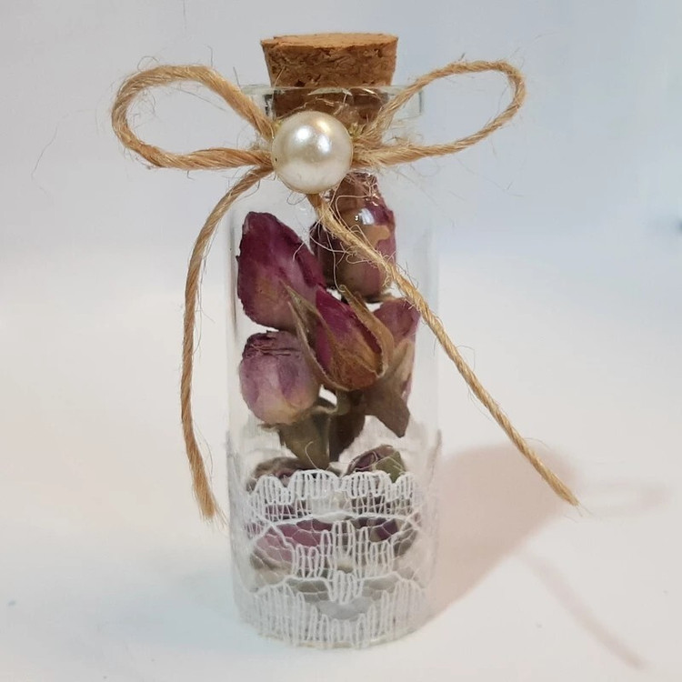 گیفت ویال عقد و عروسی و نامزدی و .. شیشه های مینیمال لوکس پر از گل غنچه یا گلبرگ با کنف و نگین و تور پایین شیشه