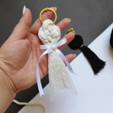 گیفت زیبای مکرومه با بافت ژوزفین مناسب عقد عروسی نامزدی با تزیین تور و نگین وحلقه طلائی ساده بدون تزیینات هم قابل سفارشه