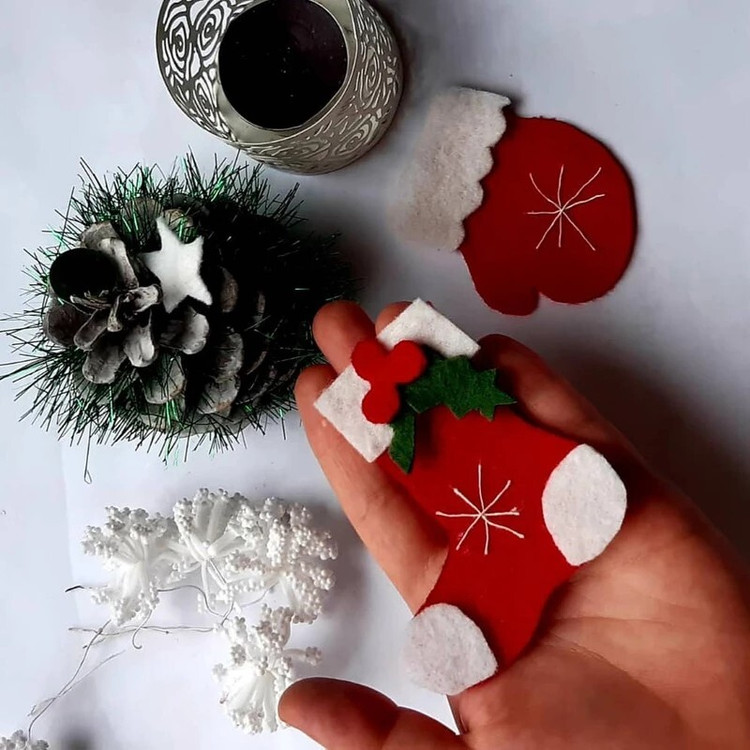 تزیینی زیبا برای تم یلدا و کریسمس یادگاری بی نظیر به عزیزان آویزی دلنشین برای اتاق کودک و آتلیه ای حرفه ای با مجموعه تم های برفی با تزیین این مدل جوراب و دستکش مدل کلاه هم موجود میباشد .