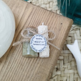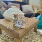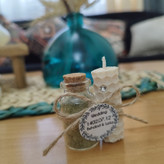 یک شمع زیبای ۶سانتی دیر سوز از جنس موم و شیشه حنای خشک با تزیین کنف و تگ اسم انتخابی شما چه هدیه ای از این زیباتر؟